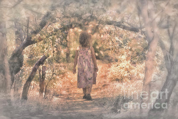 This Fine Art Photography Print, "Foggy Morning Light", by Mary Lou Chmura, is a composition of a little girl walking on a foggy morning through the woods into the morning light.